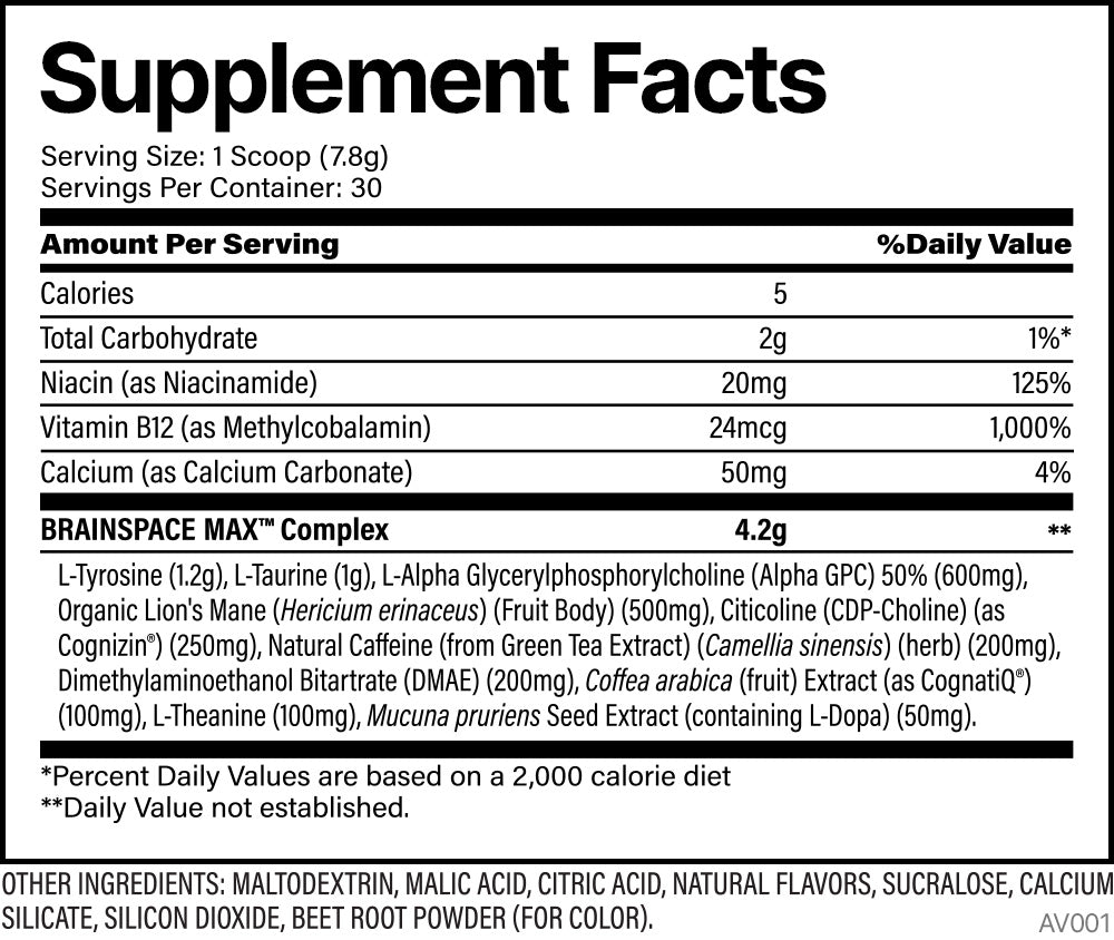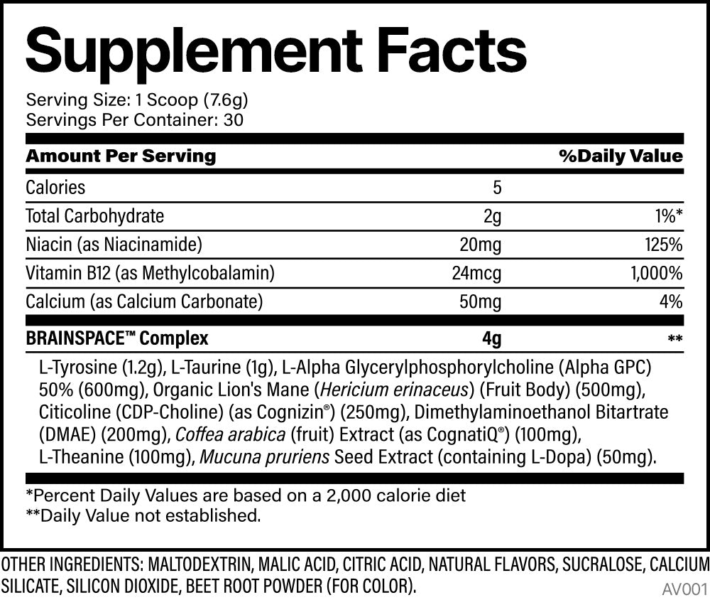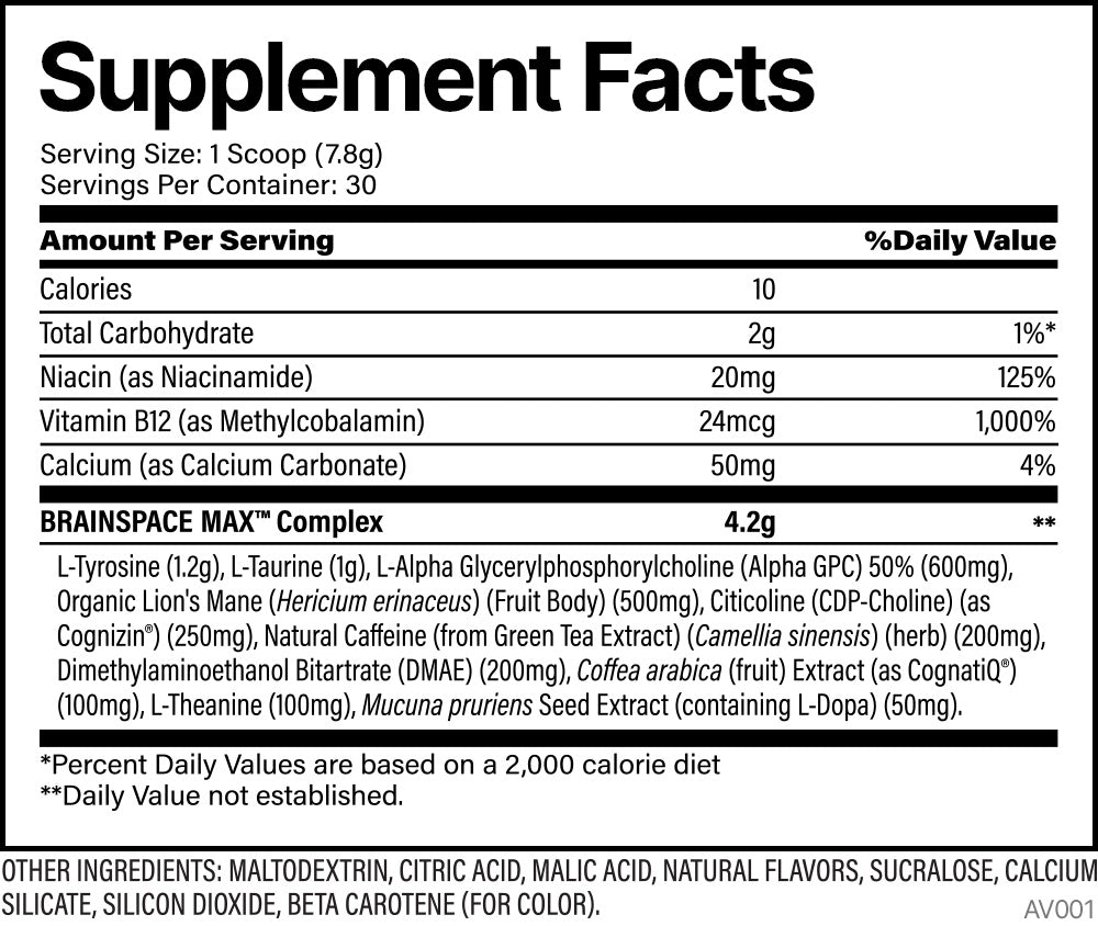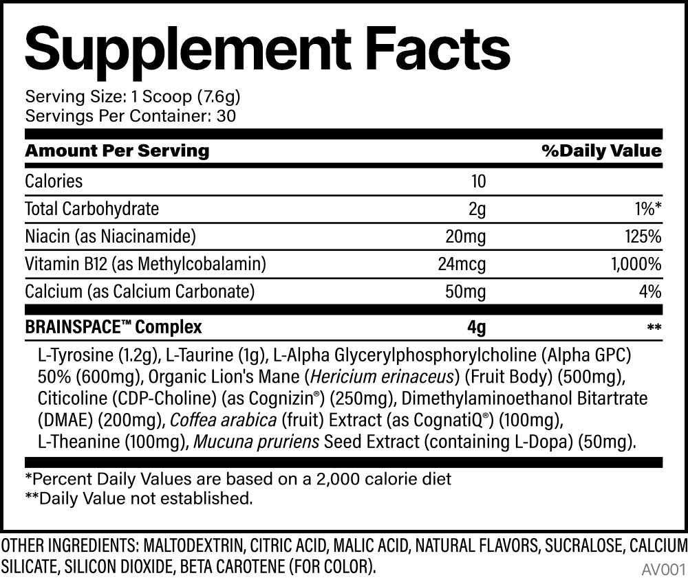 At the heart of Brainspace is Cognizin®, a clinically-backed powerhouse shown to support cognitive function. It fires up your neurotransmitters and cranks up brain metabolism, giving you the edge in clarity and mental speed. But that’s not all—this formula also packs Alpha GPC, Organic Lion’s Mane, L-Tyrosine, and CognatiQ® to create a cognitive experience like no other.