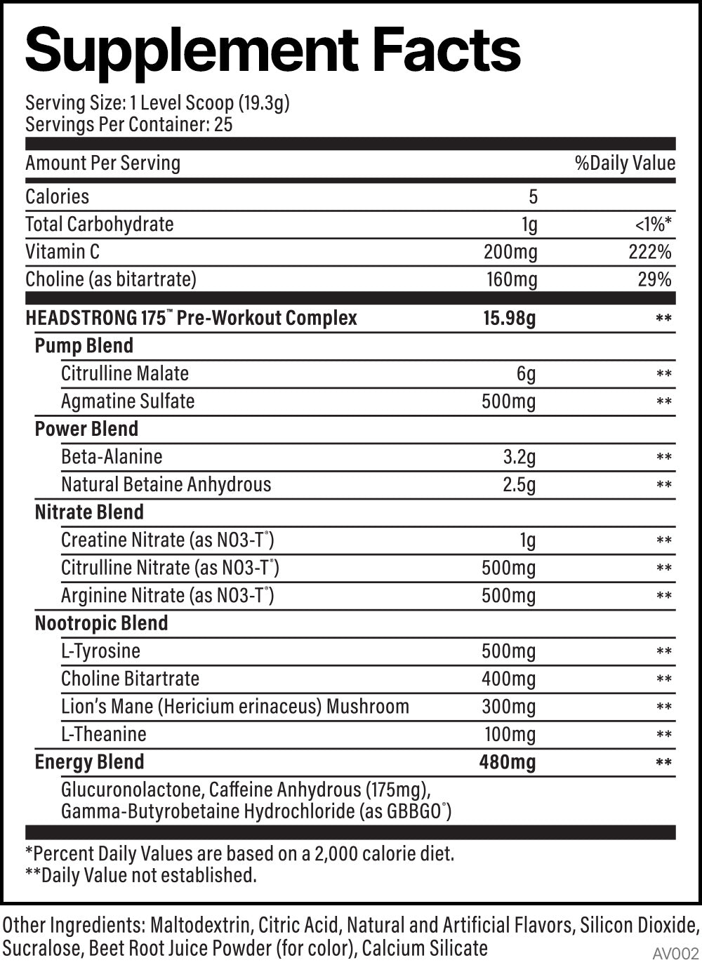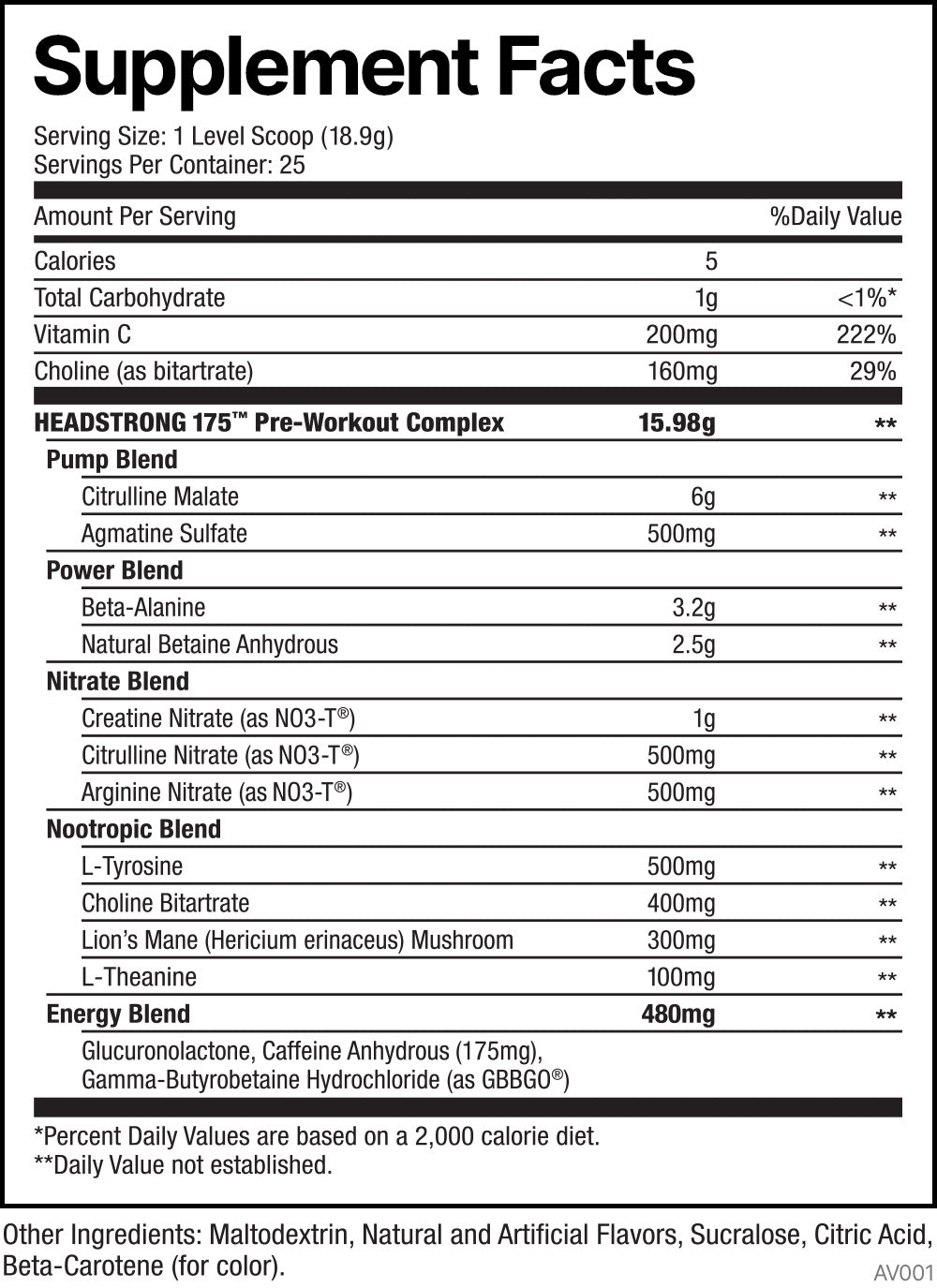 Headstrong 175 is a great choice for fitness enthusiasts who may be sensitive to stimulants or prefer to work out at night but still want a high-performance product. For those who want that hard-hitting, “high-stim” feeling, check out the original HEADSTRONG. Get your head in the game! Get Headstrong 175!