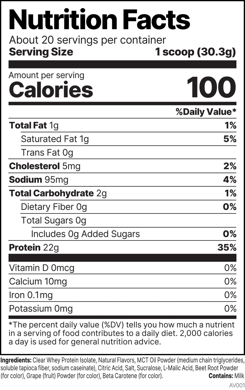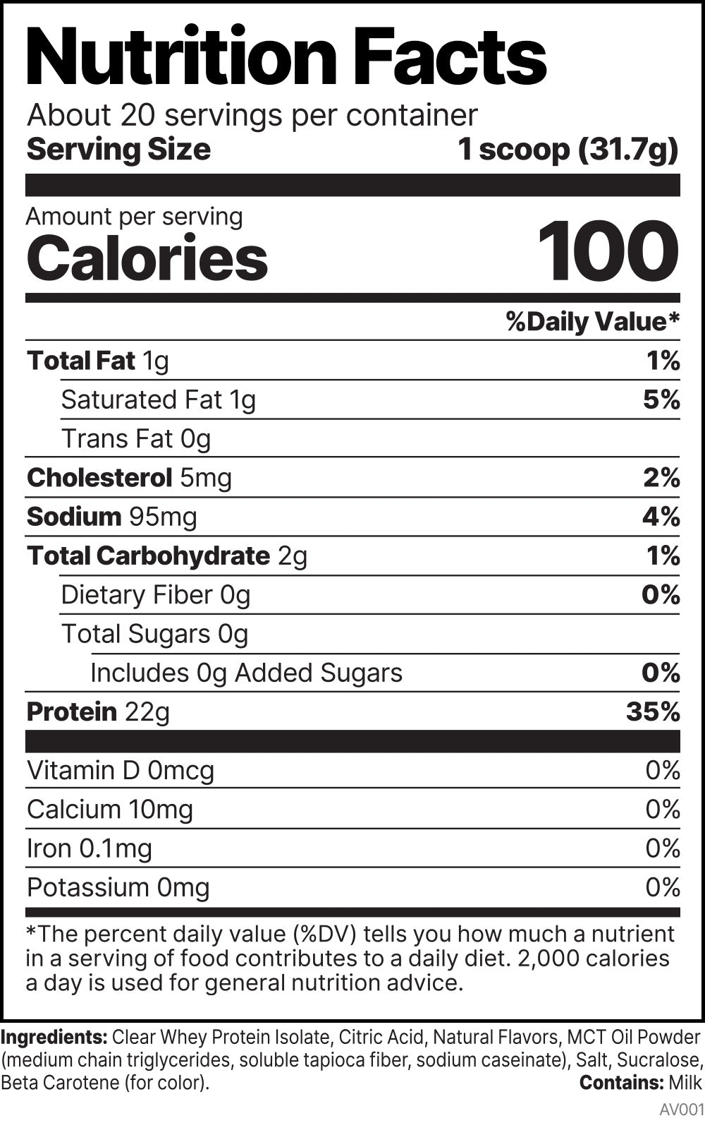 Whether you’re chasing gains in the gym, maintaining a lean physique, or just want a better-tasting protein drink you’ll actually look forward to, Clear Whey Protein Isolate delivers the performance you need and the flavor you’ll love in every clear, refreshing sip.